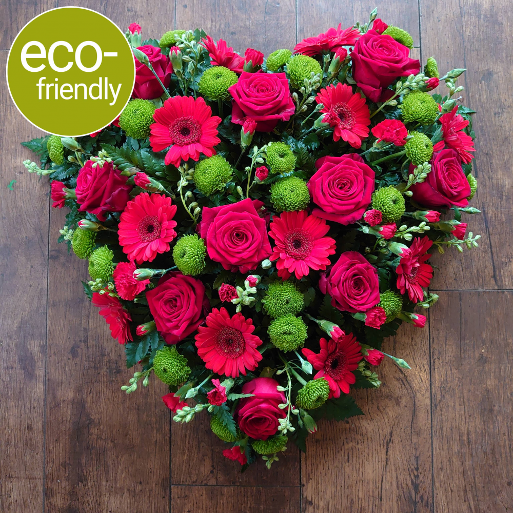 Our Eco-Funeral Heart is made using biodegradable floral foam, recyclable tray and other kind to the planet materials. Your tribute won’t look exactly like the one pictured, but it will be just as beautiful.